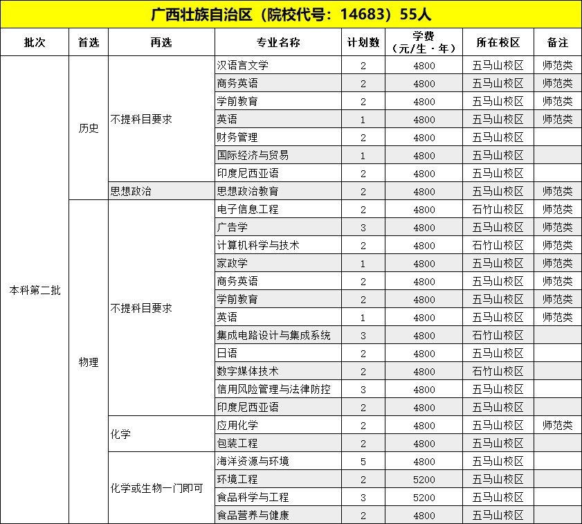 新增:思想政治教育、光电信息科学与工程、食品营养与健康、印度尼西亚语等4个招生专业。